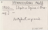 NOWACZYŃSKI Adolf 1920... [Spór o Spisz i Orawę].