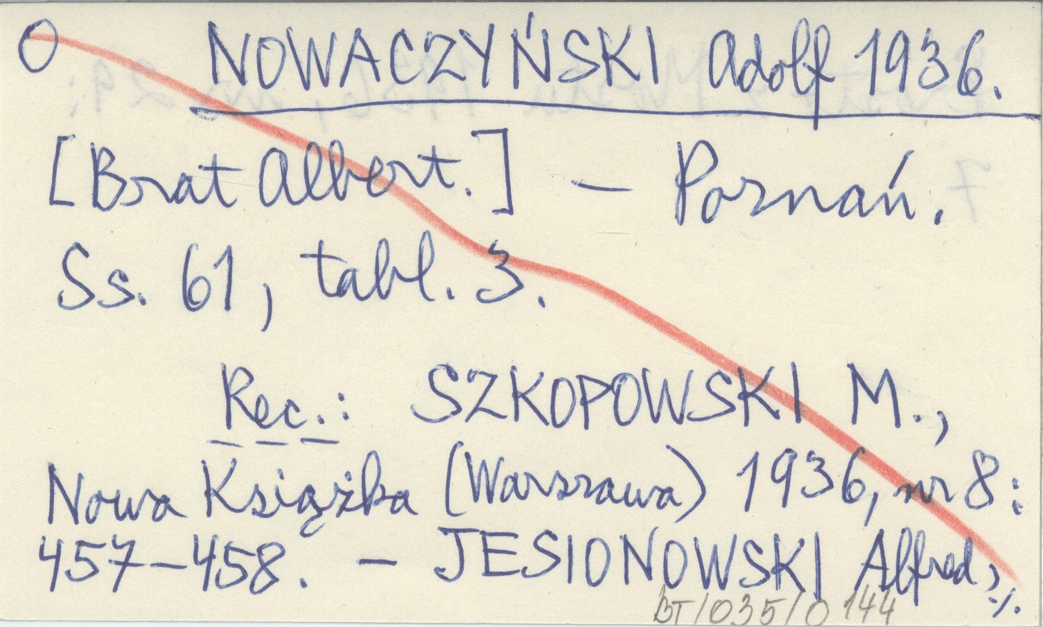 Poznań , 61 s., 3 k. tabl. REC: SZKOPOWSKI M., Nowa Książka (Warszawa) 1936, nr 8: 457-458 ; JESIONOWSKI Alfred, Prosto z Mostu 1936, nr 29: 7 ;