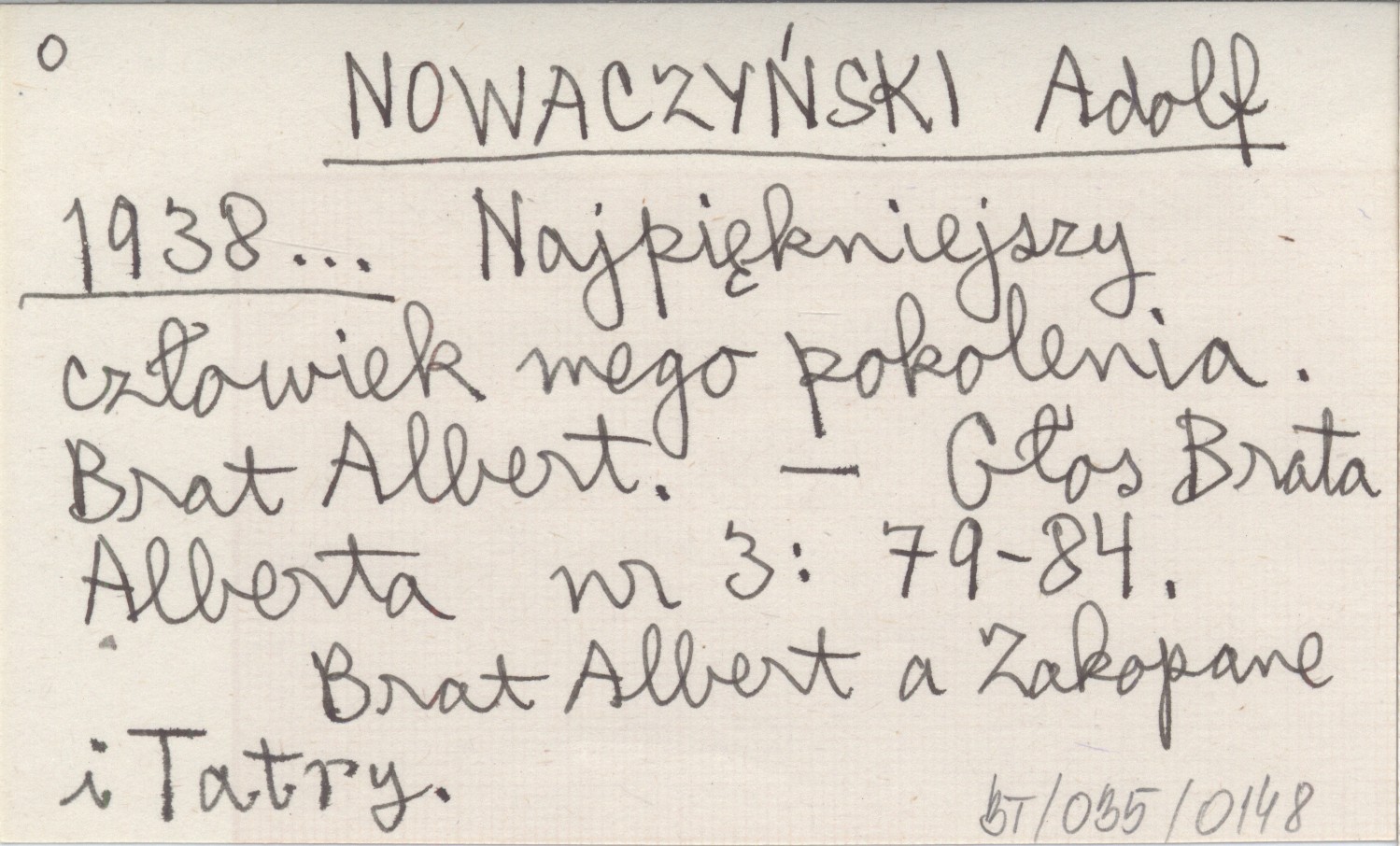NOWACZYŃSKI Adolf 1938... Najpiękniejszy człowiek mego pokolenia. Brat Albert.