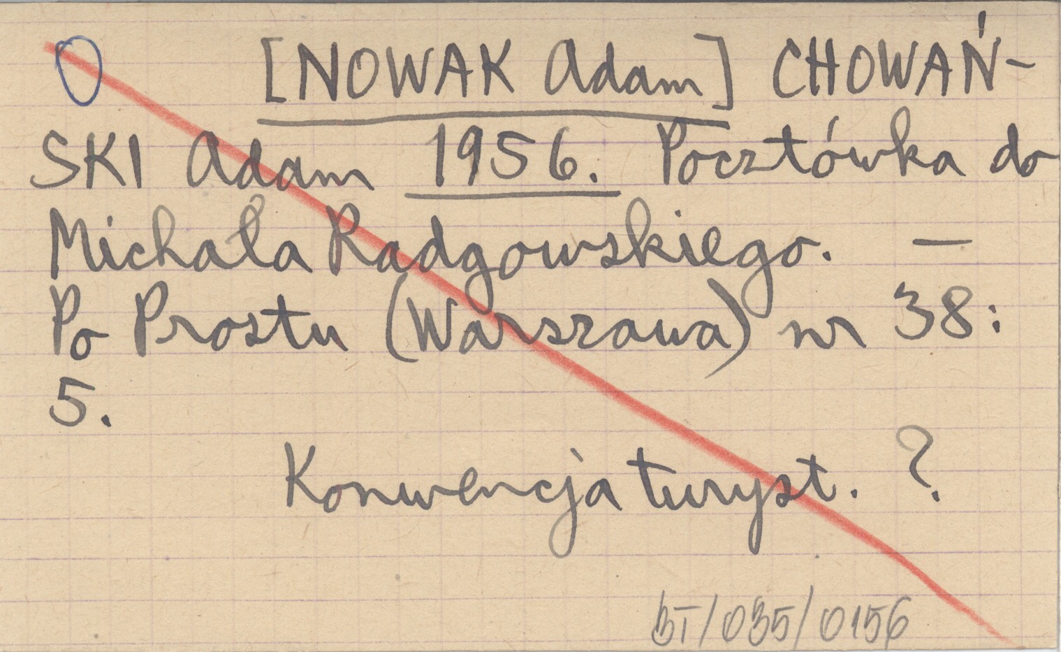 CHOWAŃSKI Adam [NOWAK Adam] 1956 Pocztówka do Michała Radgowskiego.