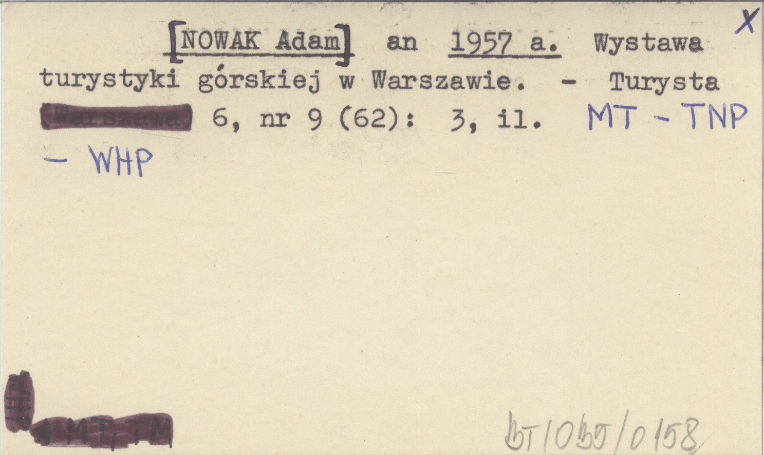 an [NOWAK Adam] 1957 a Wystawa turystyki górskiej w Warszawie.