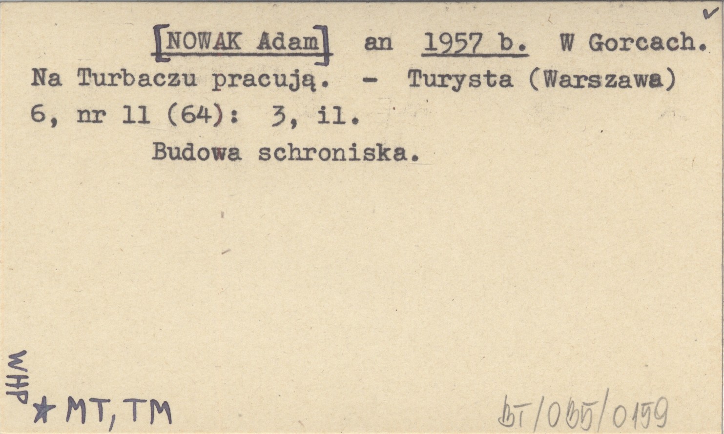 an [NOWAK Adam] 1957 b W Gorcach. Na Turbaczu pracują.
