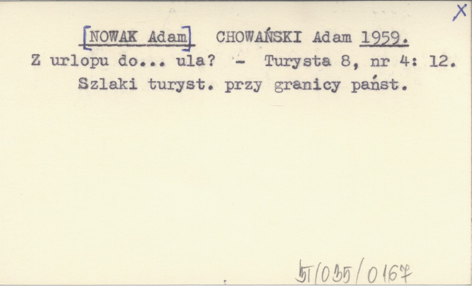 CHOWAŃSKI Adam [NOWAK Adam] 1959 Z urlopu do... ula?