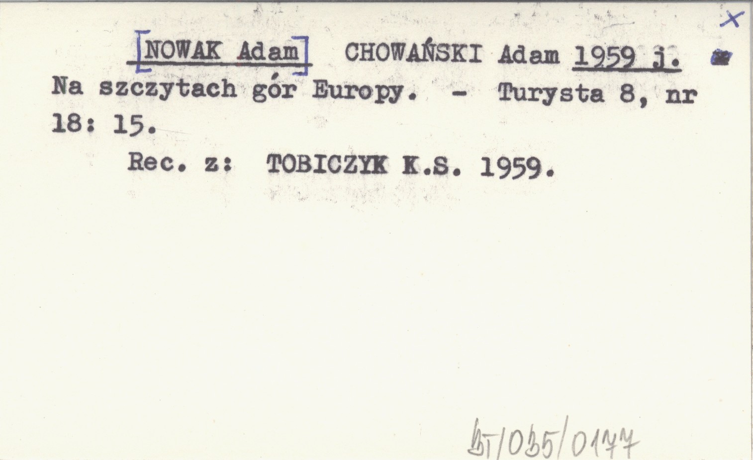 CHOWAŃSKI Adam [NOWAK Adam] 1959 j Na szczytach gór Europy.
