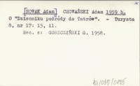 CHOWAŃSKI Adam [NOWAK Adam] 1959 h O "Dzienniku podróży do Tatrów".