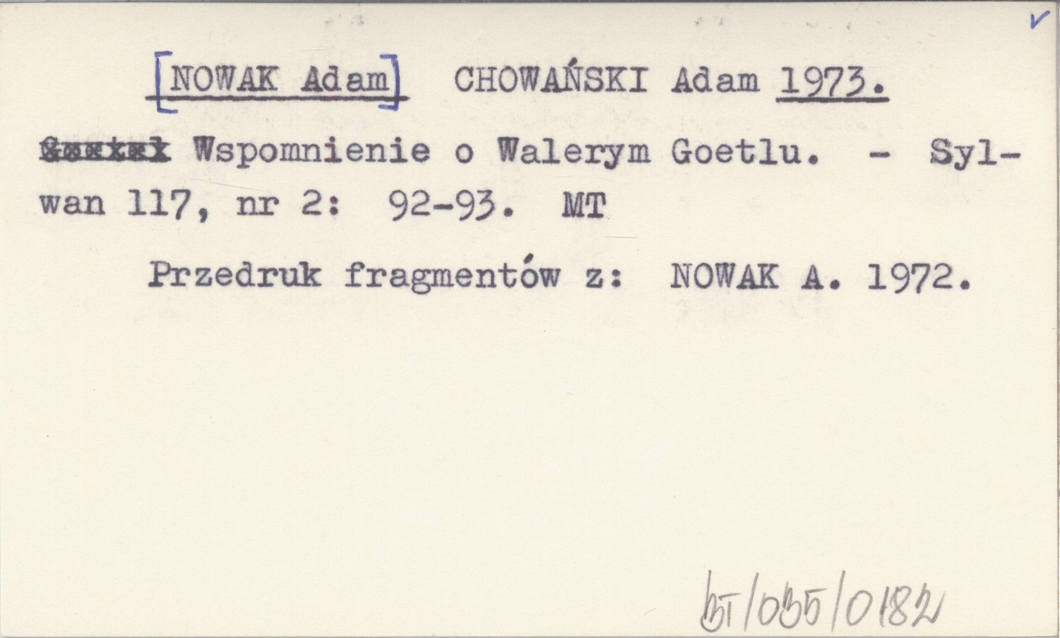 CHOWAŃSKI Adam [NOWAK Adam] 1973 Wspomnienie o Walerym Goetlu.