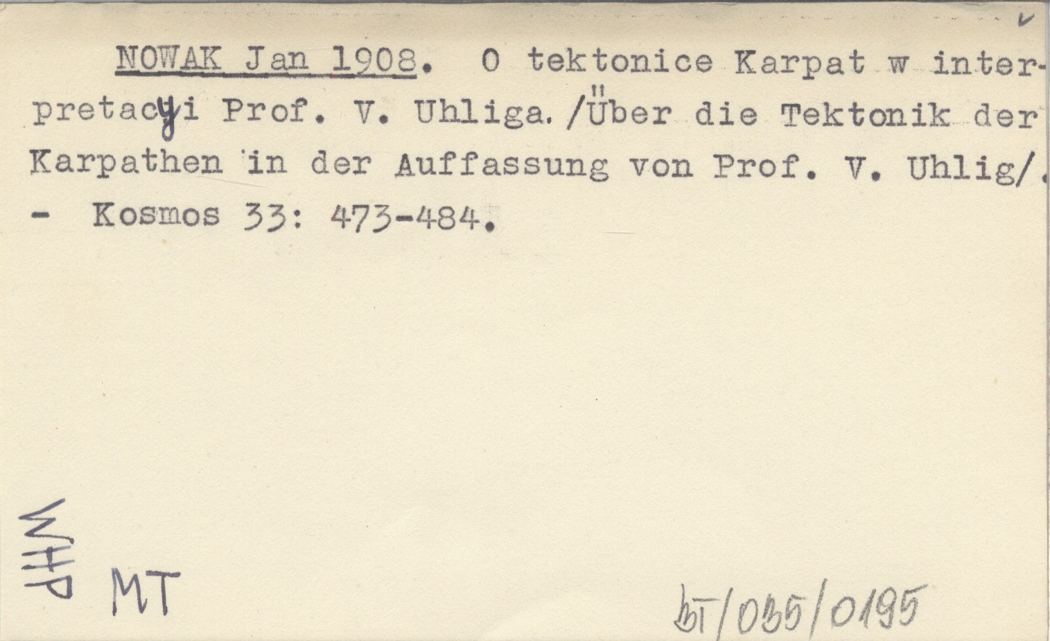 NOWAK Jan 1908 O tektonice Karpat w interpretacyi Prof. V. Uhliga. (Über die Tektonik der Karpathen in der Auffassung von Prof. V. Uhlig).