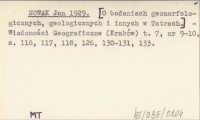 NOWAK Jan 1929 [O badaniach geomorfologicznych, geologicznych i innych w Tatrach].