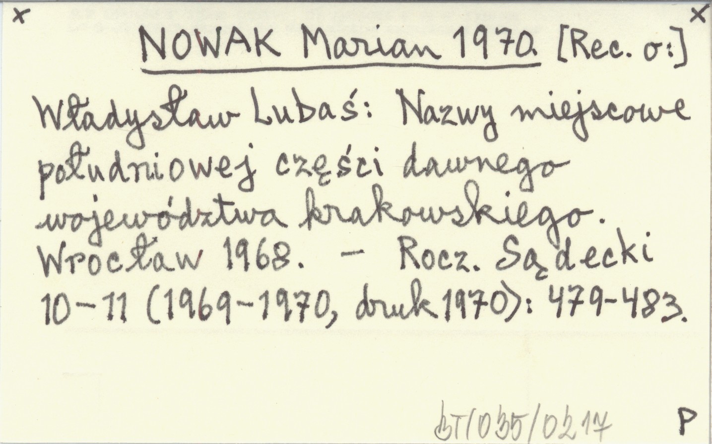 Rocznik Sądecki, 10-11 (1969-1970, druk 1970): 479-483.