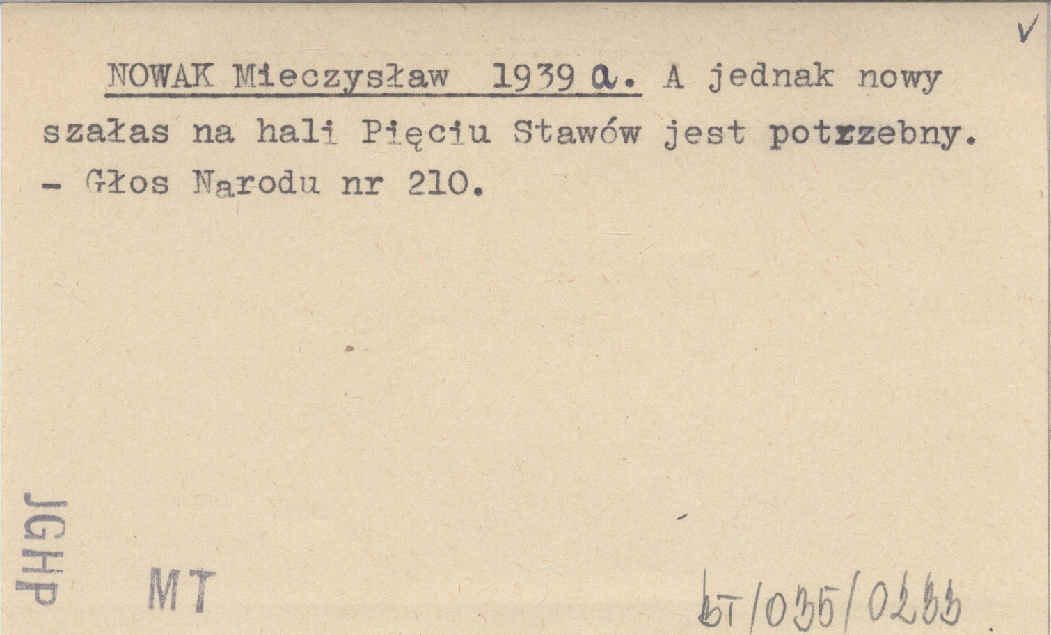 NOWAK Mieczysław 1939 a A jednak nowy szałas na hali Pięciu Stawów jest potrzebny.