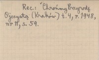 Przegląd Hodowlany (Kraków) , T. 16, nr 1-3: 39-43. REC: Chrońmy Przyrodę Ojczystą (Kraków) t. 4, r. 1948, nr 11: 59