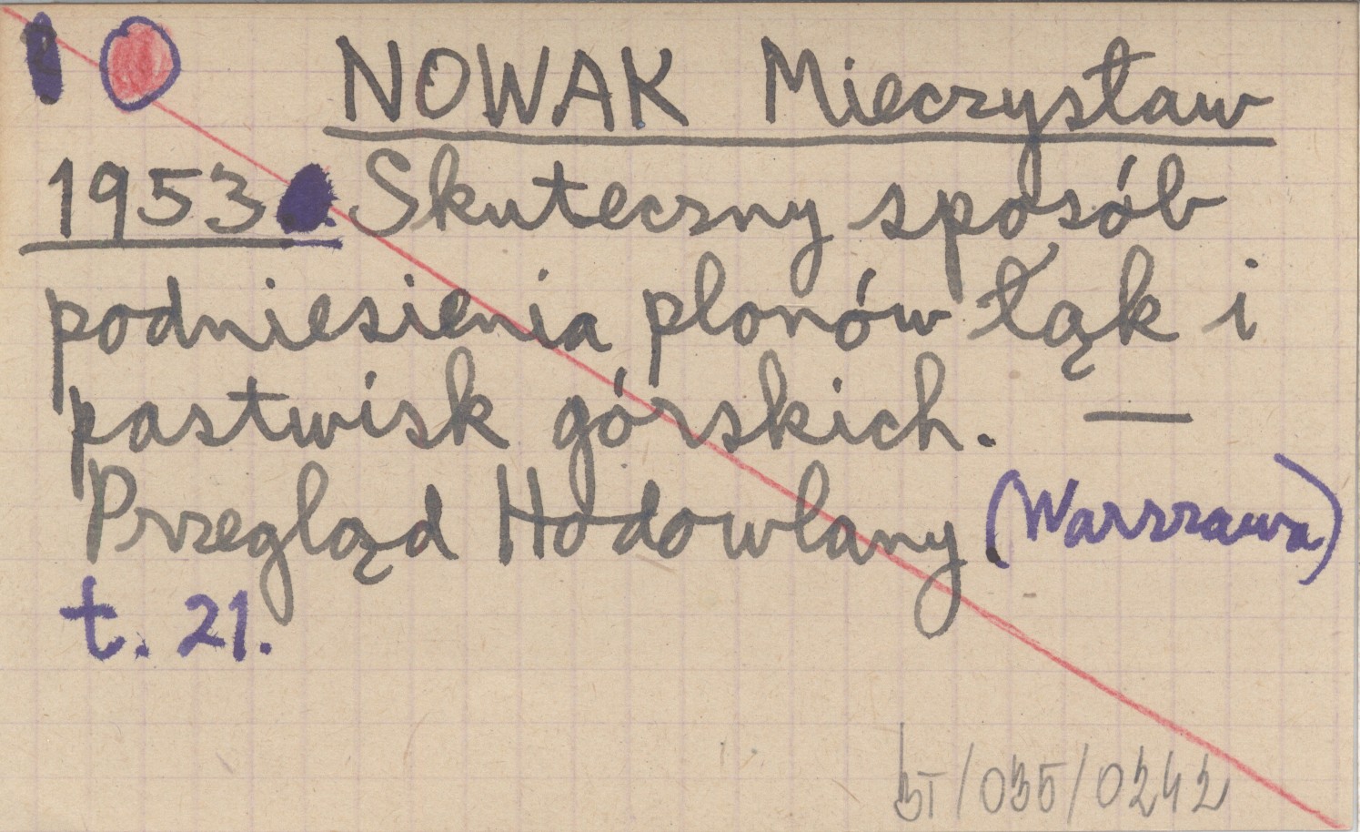 NOWAK Mieczysław 1953 Skuteczny sposób podniesienia plonów łąk i pastwisk górskich.
