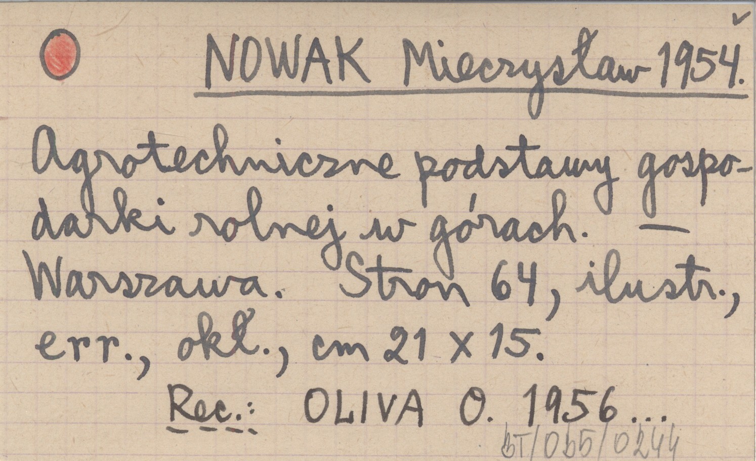 NOWAK Mieczysław 1954 Agrotechniczne podstawy gospodarki rolnej w górach.