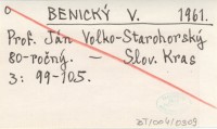 BENICKÝ V. 1961 Prof. Ján Volko-Starohorský 80-ročný.