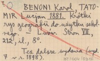 BENONI Karol TATOMIR, Lucjan. ; 1881 Krótki rys geografii do użytku szkolnego.