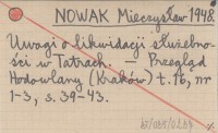 NOWAK Mieczysław 1948 Uwagi o likwidacji służebności w Tatrach.