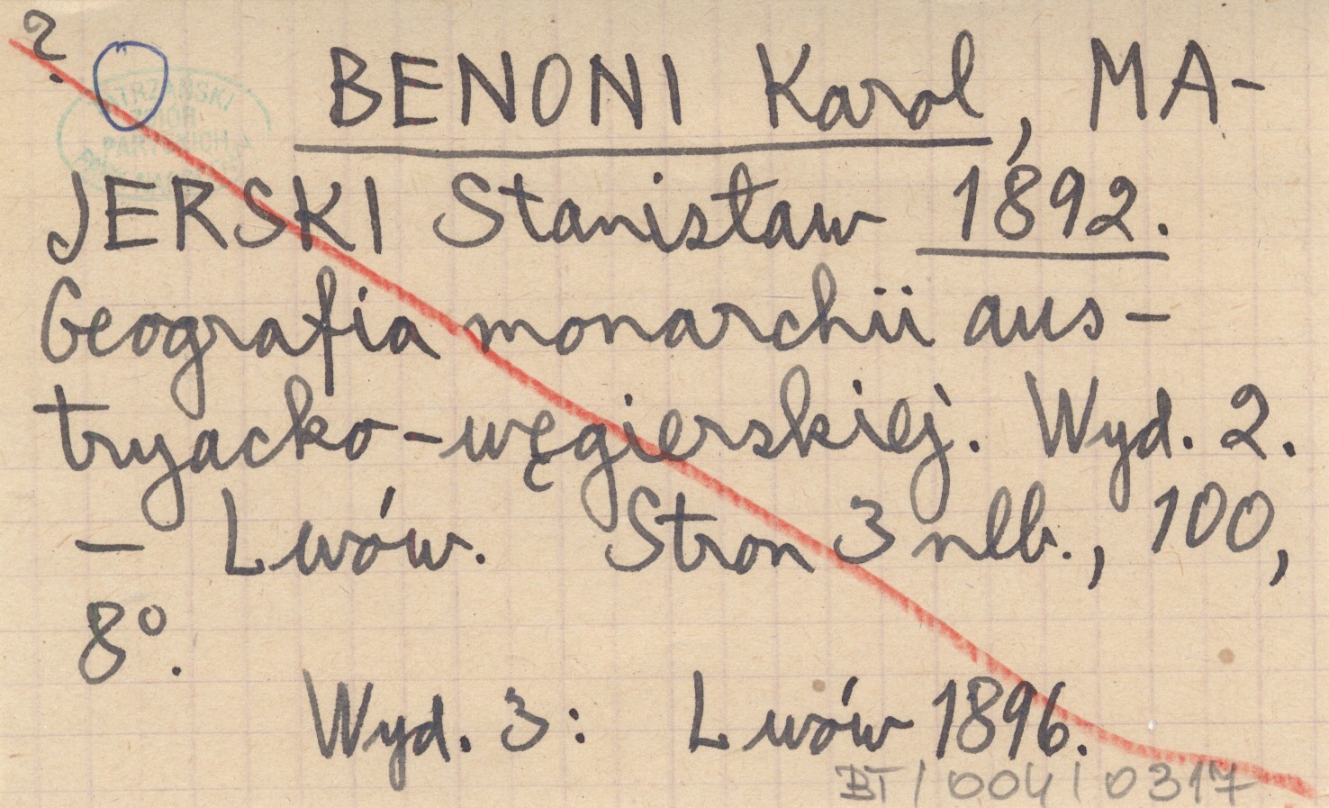 BENONI Karol MAJERSKI, Stanisław. ; 1892 Geografia monarchii austryacko-węgierskiej.