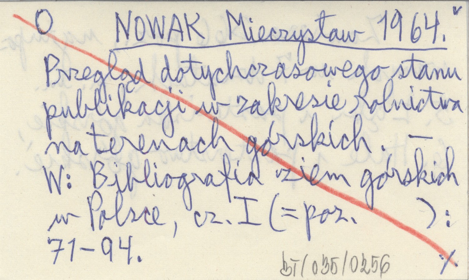 NOWAK Mieczysław 1964 Przegląd dotychczasowego stanu publikacji w zakresie rolnictwa na terenach górskich.