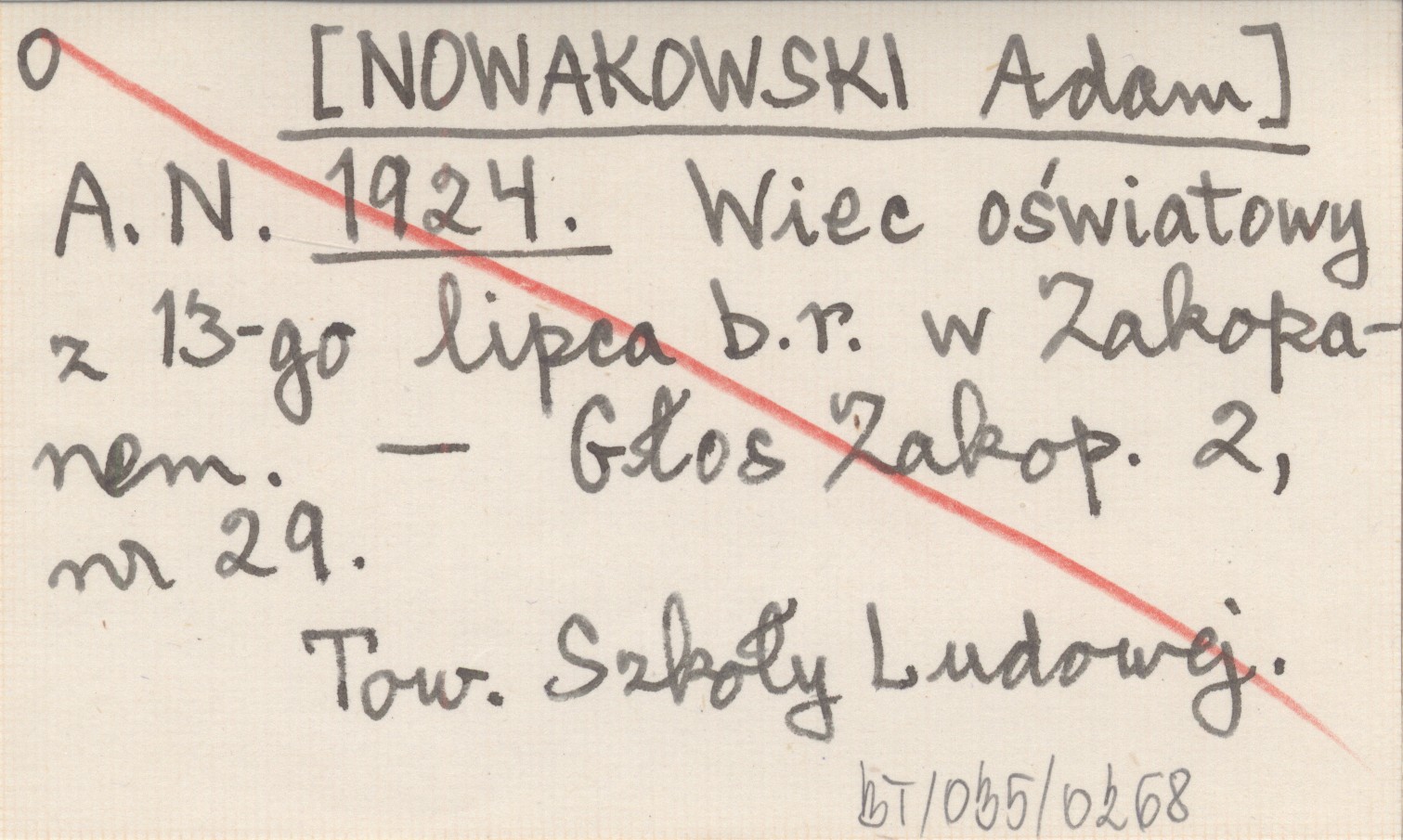 A. N. [NOWAKOWSKI Adam] 1924 Wiec oświatowy z 13-go lipca b.r. w Zakopanem.