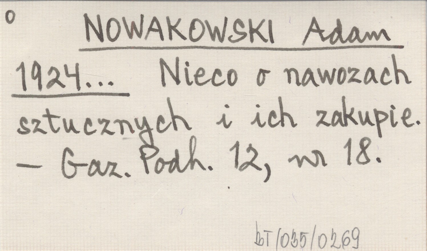 NOWAKOWSKI Adam 1924... Nieco o nawozach sztucznych i ich zakupie.