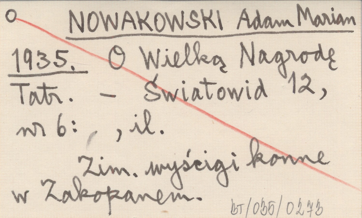 NOWAKOWSKI Adam Marian 1935 O Wielką Nagrodę Tatr.