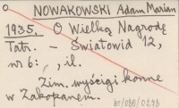 NOWAKOWSKI Adam Marian 1935 O Wielką Nagrodę Tatr.
