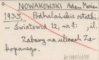 NOWAKOWSKI Adam Marian 1935 Podhalańskie ostatki.
