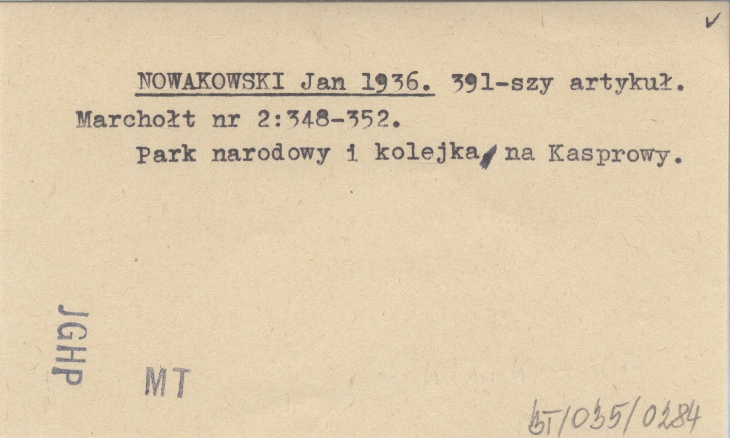 Marchołt, 2 (1935-1936), nr 2: 348-353. Park narodowy i kolejka na Kasprowy. Ochrona przyrody.