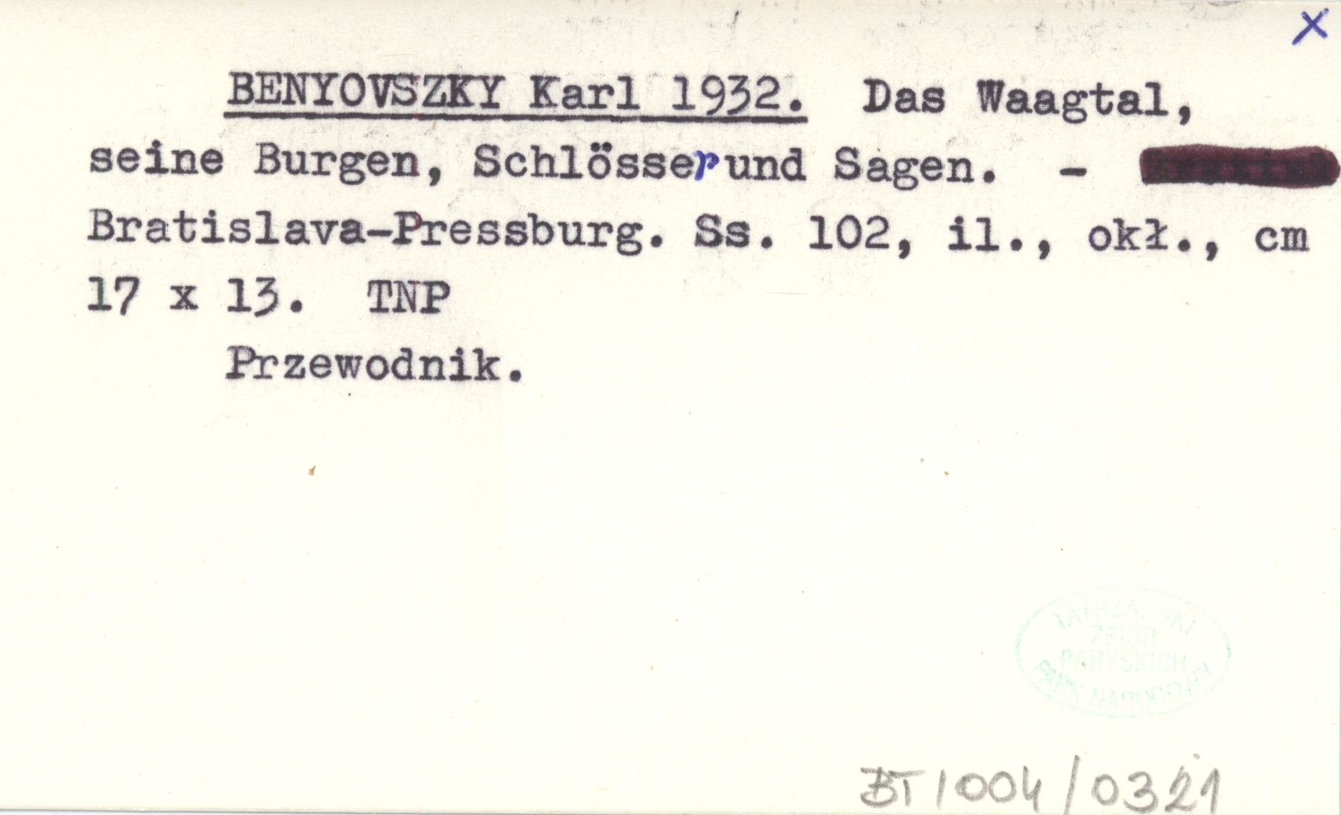 BENYOVSZKY Karl 1932 Das Waagtal, seine Burgen, Schlösserund Sagen.