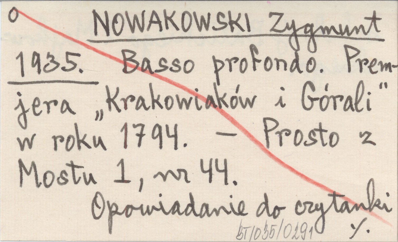 NOWAKOWSKI Zygmunt 1935 Basso profondo. Premjera "Krakowiaków i Górali" w roku 1794.