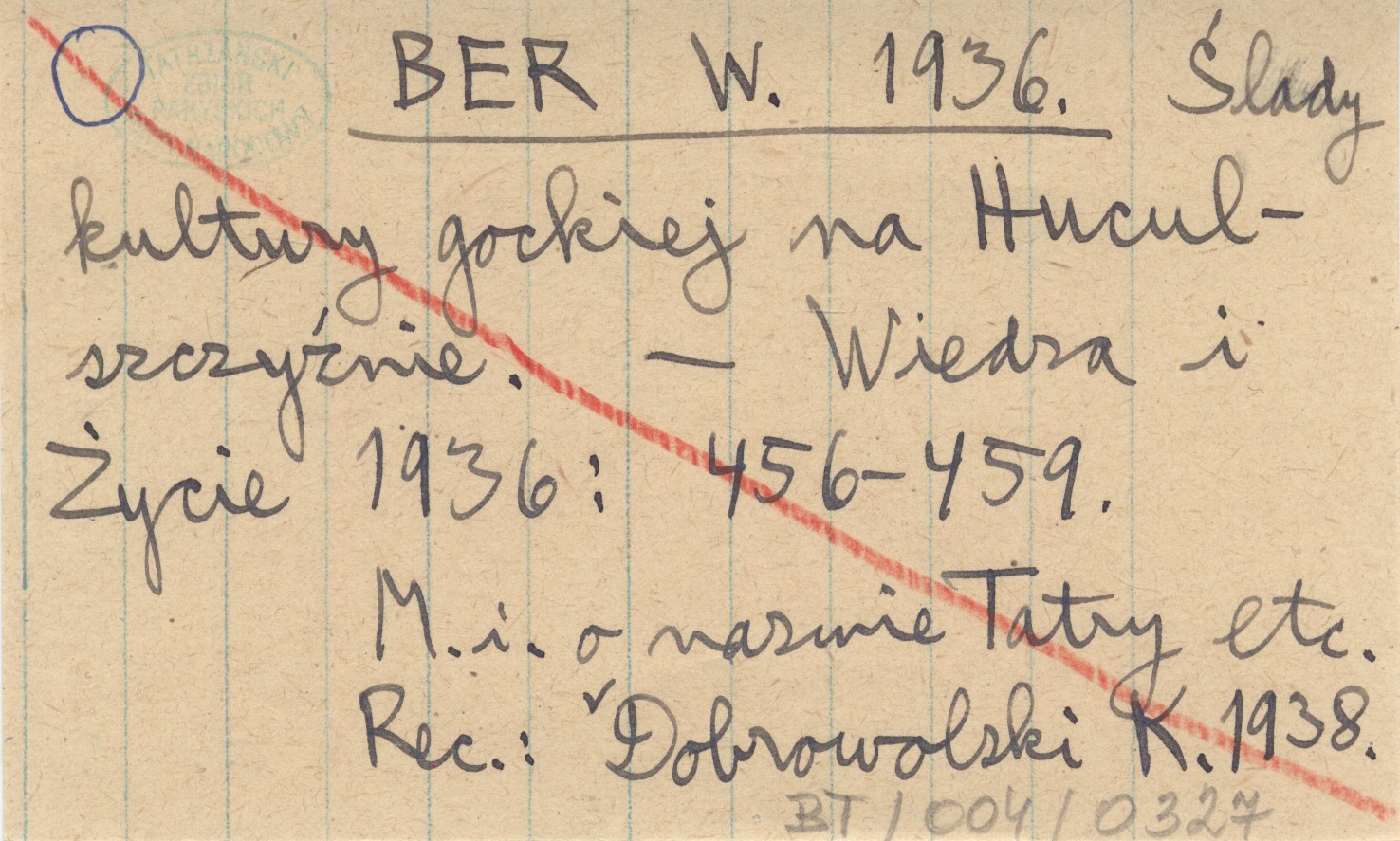 BER W. 1936 Ślady kultury gockiej na Huculszczyźnie.