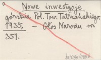 Nowe inwestycje górskie Pol. Tow. Tatrzańskiego. 1935