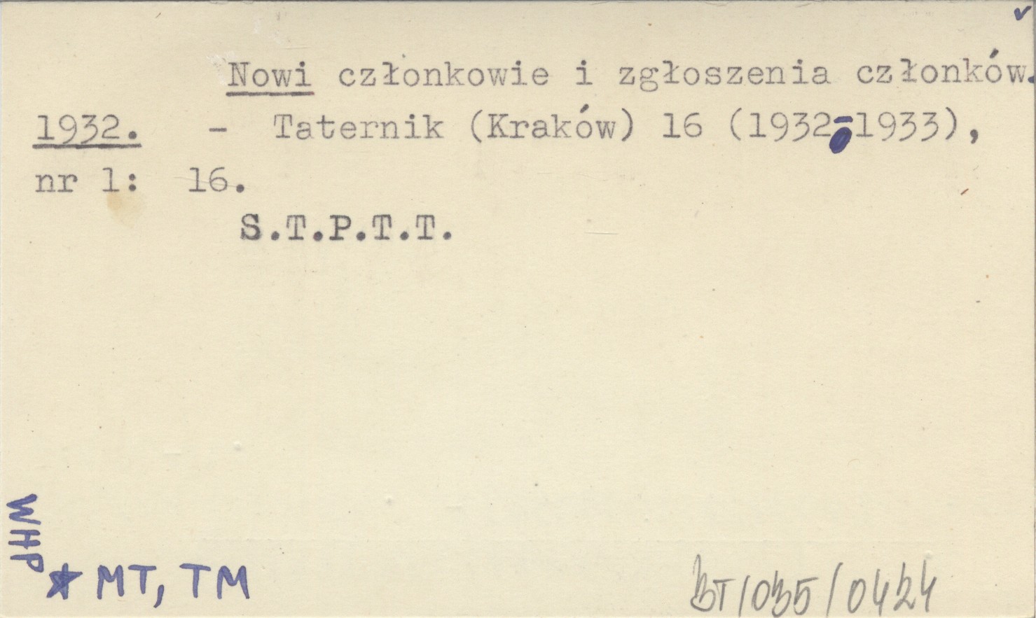 Taternik (Kraków) , 16 (1932-1933), nr 1: 16. S.T.P.T.T.