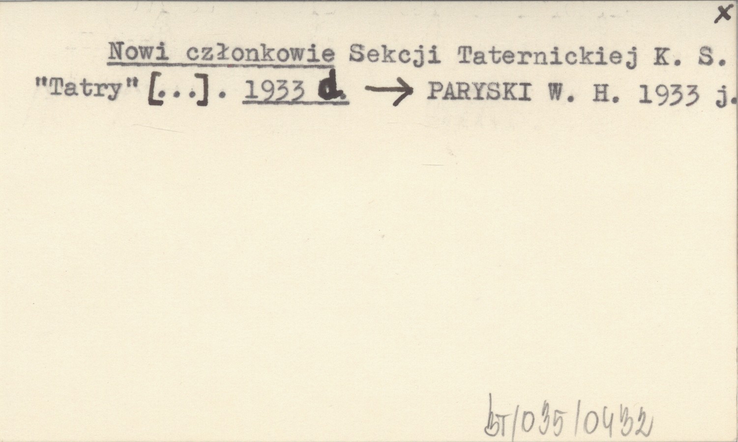 Nowi członkowie Sekcji Taternickiej K. S. "Tatry" [...]. 1933 d