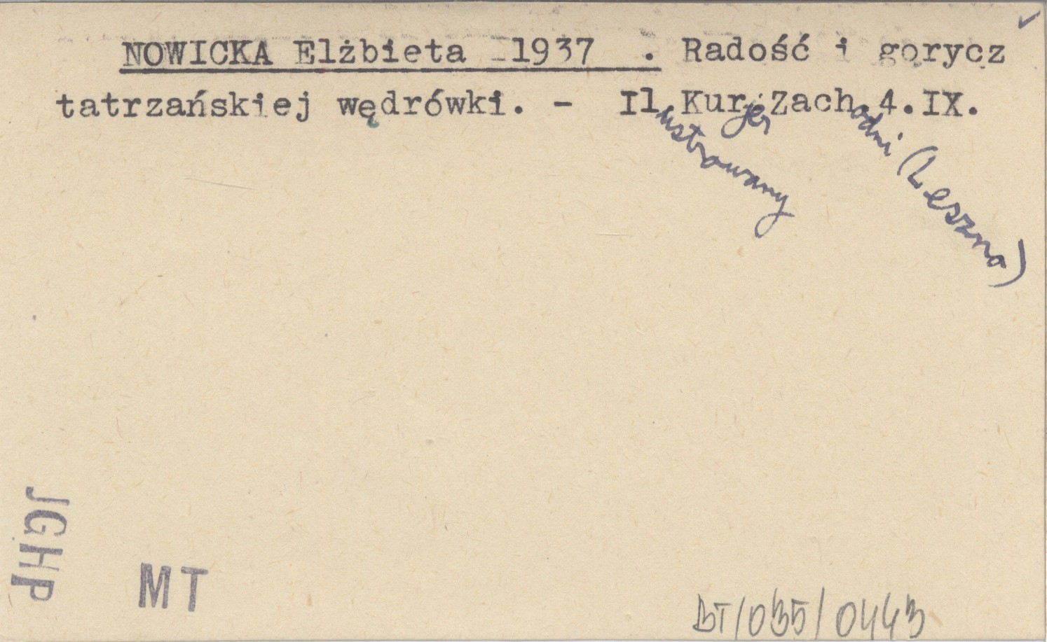 NOWICKA Elżbieta 1937 Radość i gorycz tatrzańskiej wędrówki.