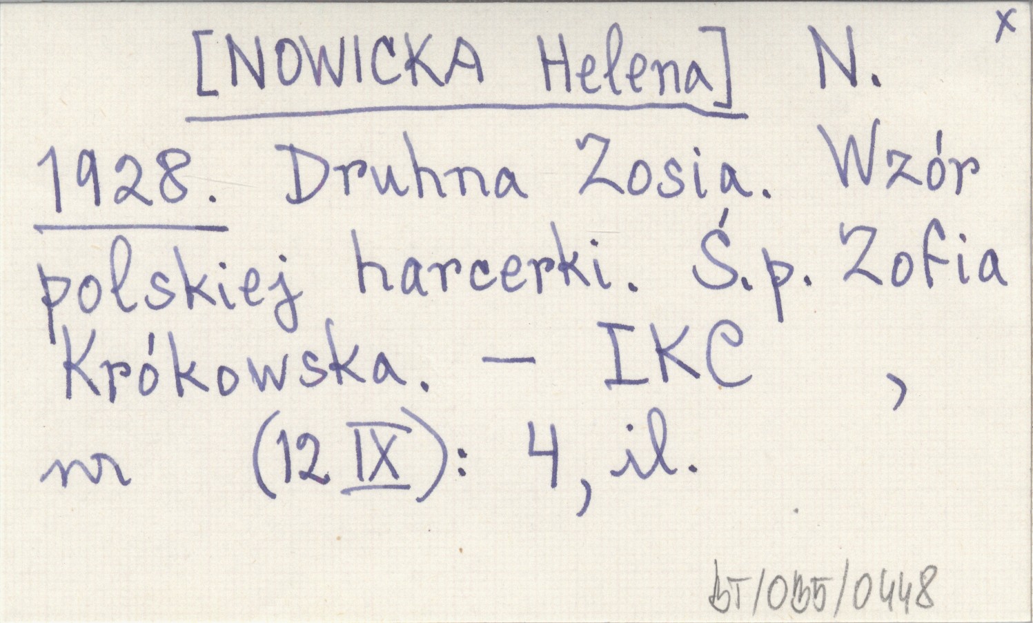 N. [NOWICKA Helena] 1928 Druhna Zosia. Wzór polskiej harcerki. Ś.p. Zofia Krókowska.