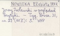 NOWICKA Elżbieta 1977 Jerzy Żuławski w poglądach krytyki.