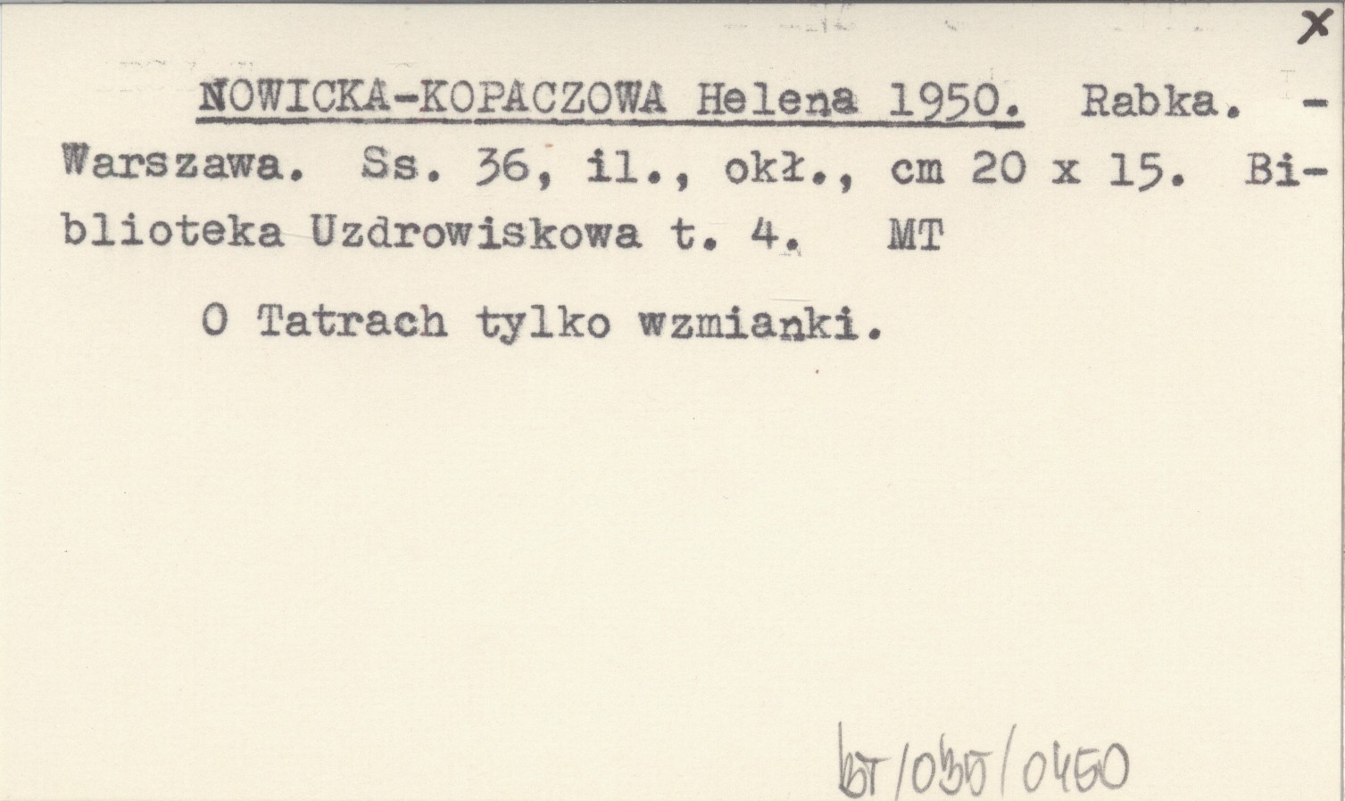 Warszawa (Biblioteka Uzdrowiskowa, t. 4) , 36 s., il., okł., 20x15 cm. O Tatrach tylko wzmianki.