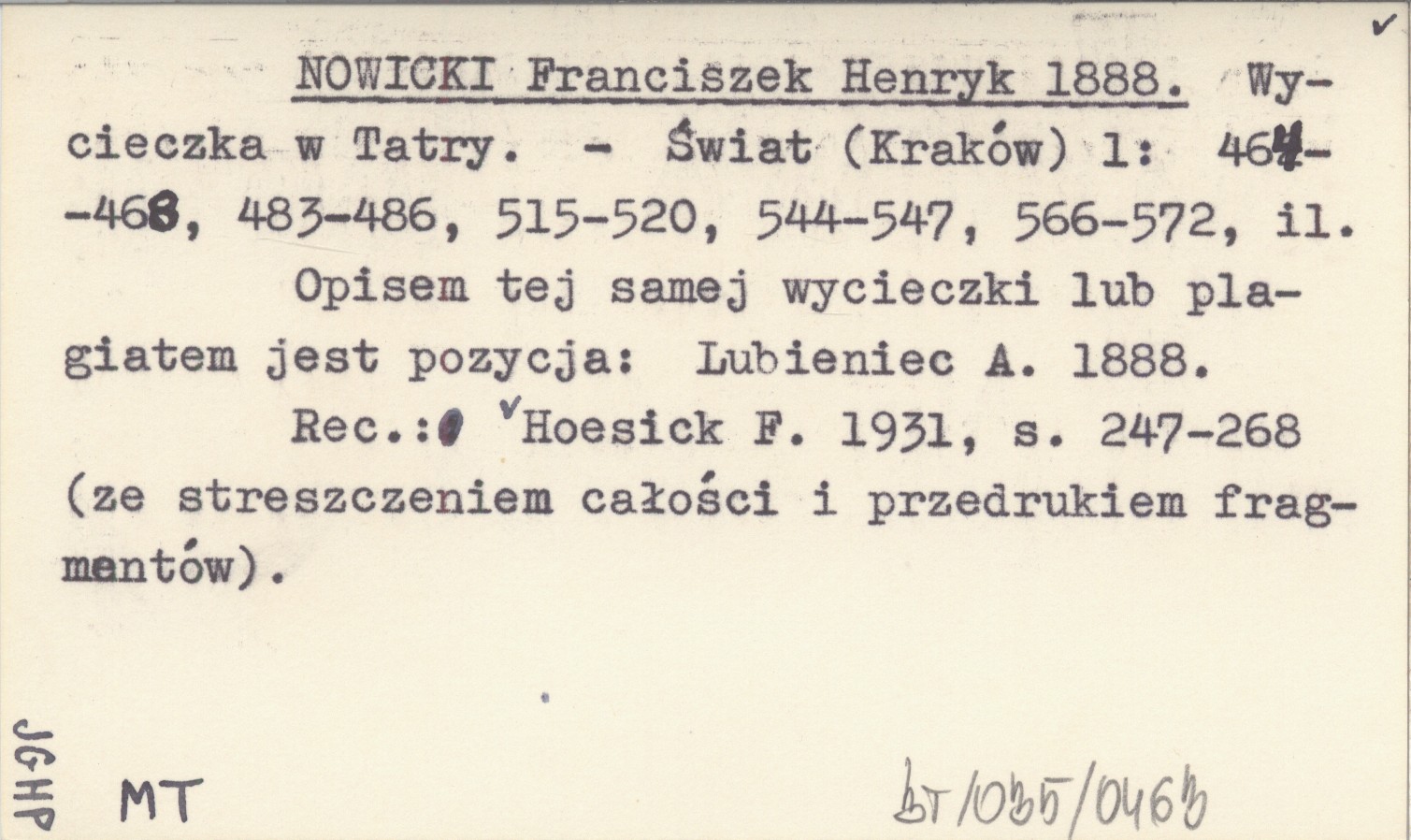 Świat (Kraków) , 1: 464-468, 483-486, 515-520, 544-547, 566-572, il. Opisem tej samej wycieczki lub plagiatem jest pozycja: Lubieniec A. 1888. REC: HOESICK F. 1931, s. 247-268 (ze streszczeniem całości i przedrukiem fragmentów)