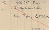 NOWICKI Franc. H. Sonety tatrzańskie.
