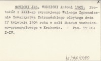 NOWICKI Jan WODZICKI, Antoni. ; 1905 Protokół z XXXI-go zwyczajnego Walnego Zgromadzenia Towarzystwa Tatrzańskiego odbytego dnia 17 kwietnia 1904 roku w sali Muzeum techniczno-przemysłowego w Krakowie.