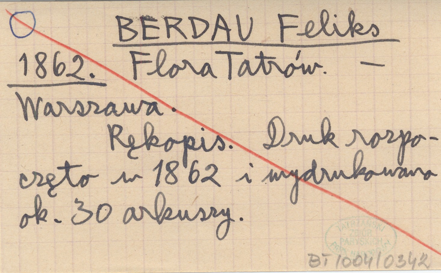 Warszawa , Rękopis. Druk rozpoczęto w 1862 i wydrukowano ok. 30 arkuszy.