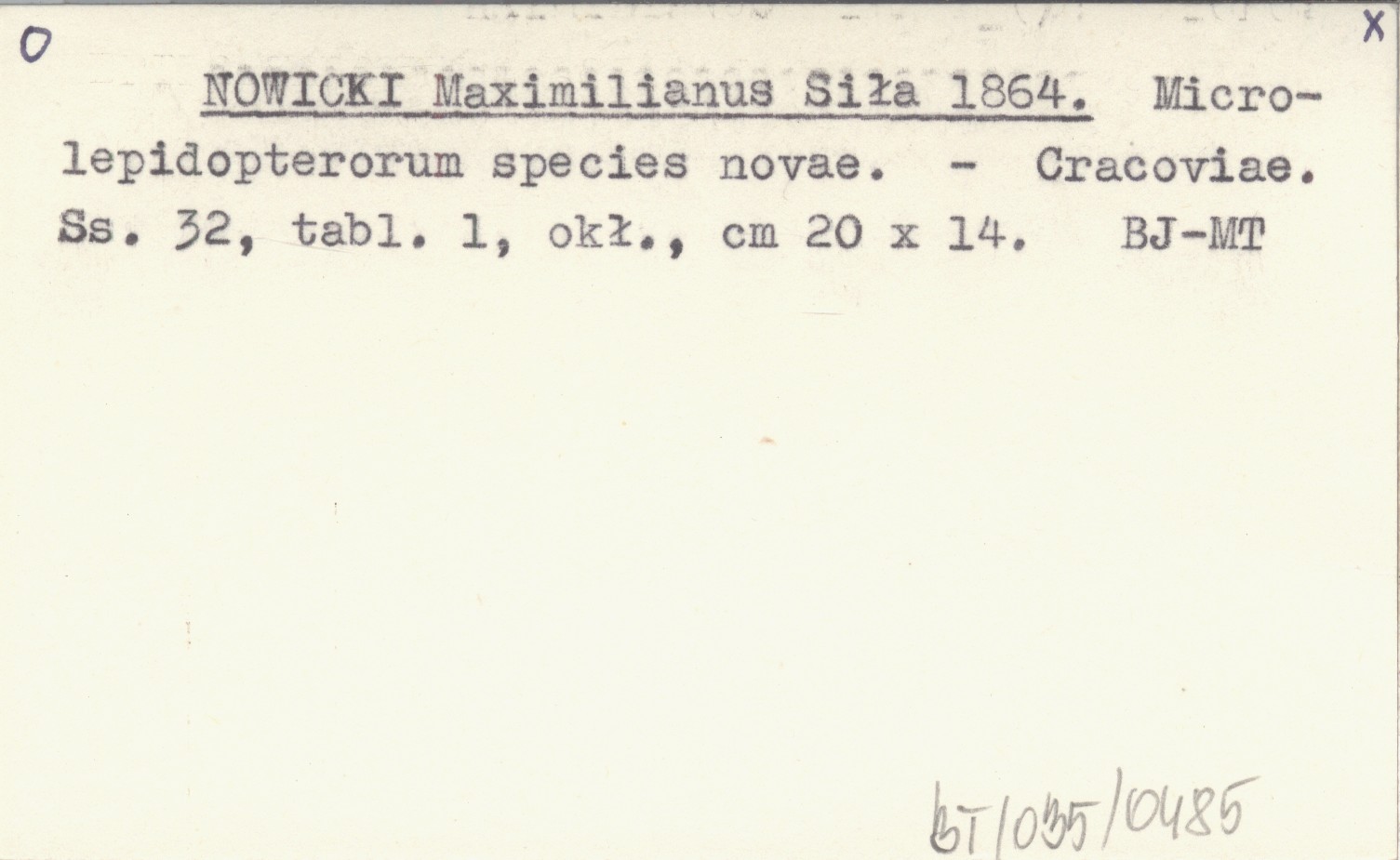 NOWICKI Maximilianus Siła 1864 Microlepidopterorum species novae.