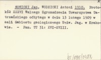 NOWICKI Jan WODZICKI, Antoni. ; 1910 Protokół XXXVI Walnego Zgromadzenia Towarzystwa Tatrzańskiego odbytego w dniu 13 lutego 1909 w sali Gabinetu geologicznego Uniw. Jag. w Krakowie.
