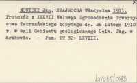 NOWICKI Jan SZAJNOCHA, Władysław. ; 1911 Protokół z XXXVII Walnego Zgromadzenia Towarzystwa Tatrzańskiego odbytego dn. 26 lutego 1910 r. w sali Gabinetu geologicznego Uniw. Jag. w Krakowie.