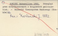 NOWICKI Maksymilian 1862 Przegląd prac dotychczasowych o kręgowcach galicyjskich.