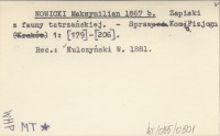 Zapiski z fauny tatrzańskiej.