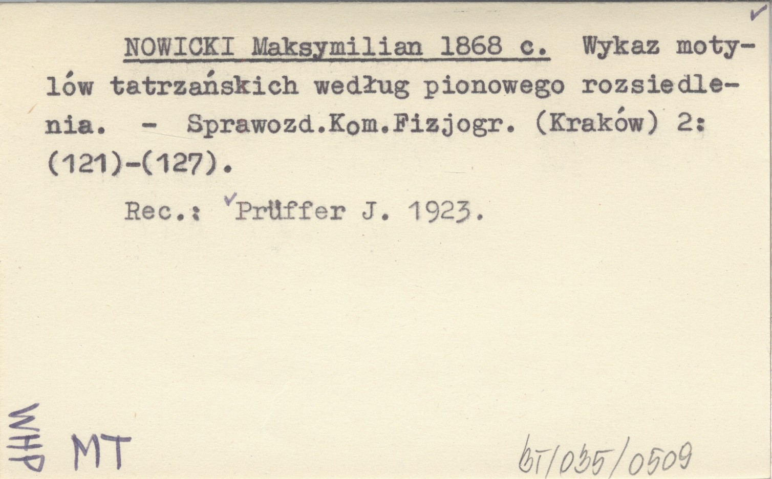 NOWICKI Maksymilian 1868 c Wykaz motylów tatrzańskich według pionowego rozsiedlenia.