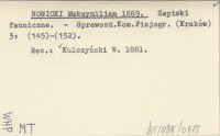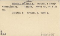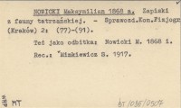 NOWICKI Maksymilian 1868 a Zapiski z fauny tatrzańskiej.