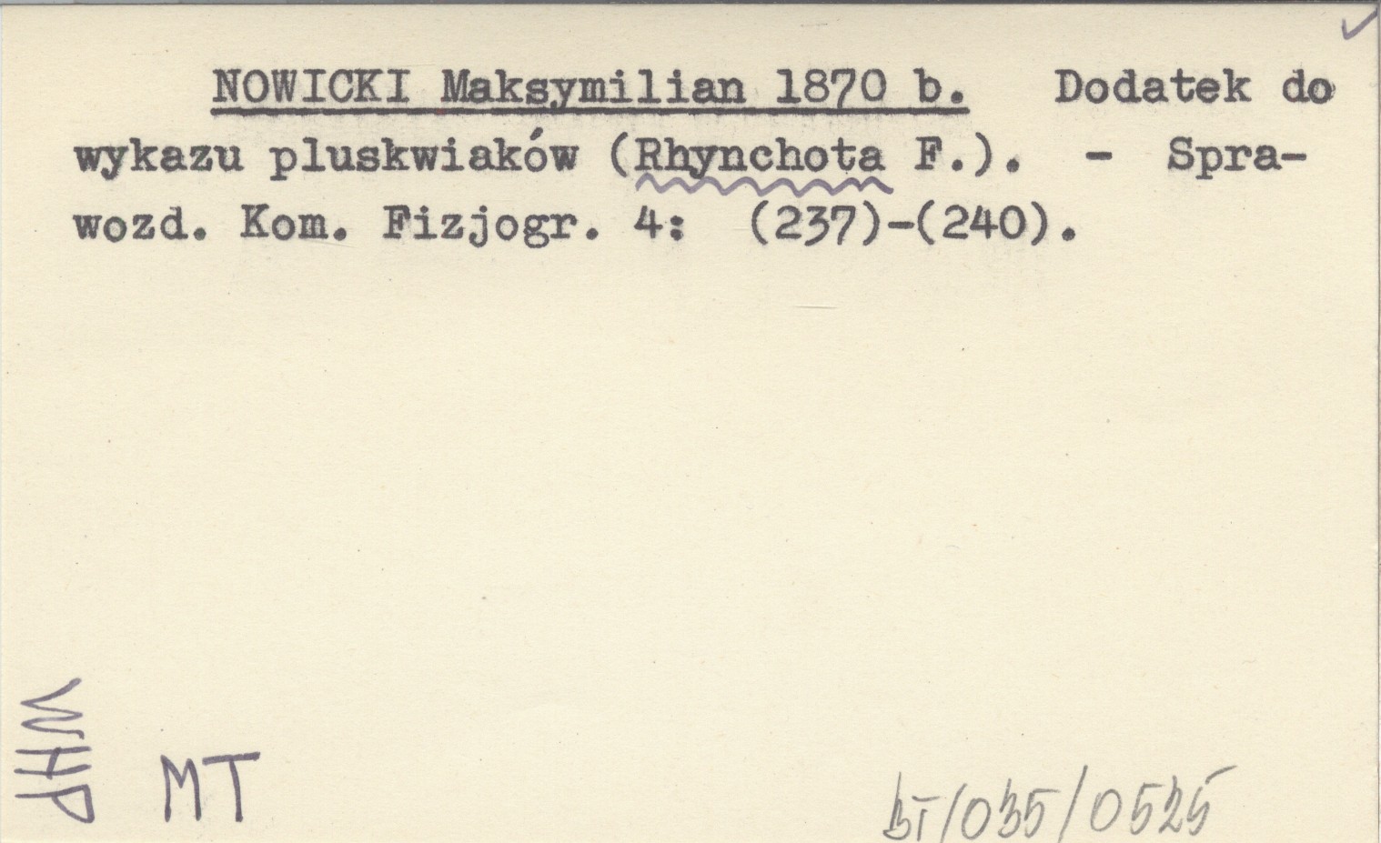 NOWICKI Maksymilian 1870 b Dodatek do wykazu pluskwiaków (Rhynchota F.).